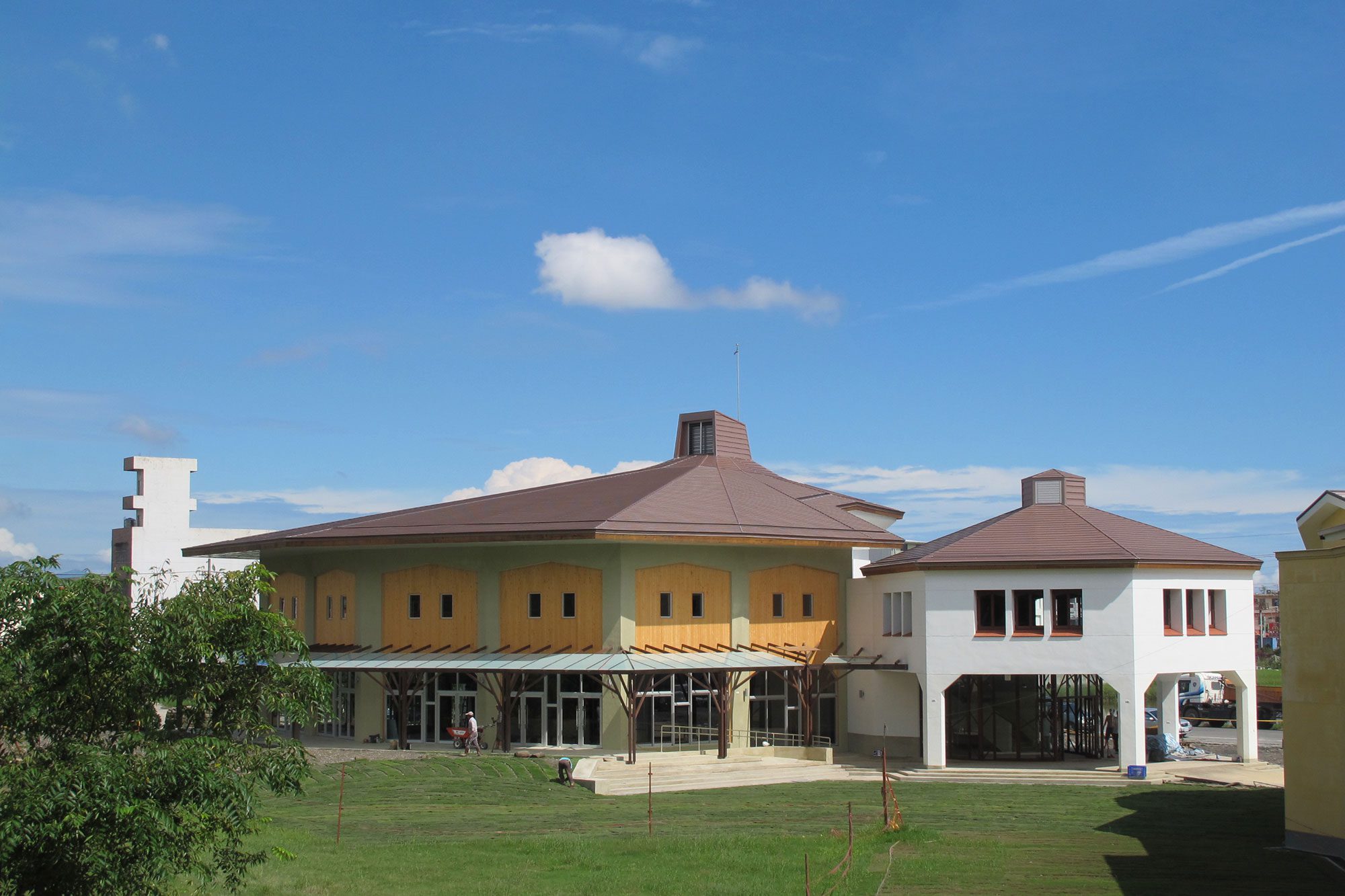 第三個案例是宜蘭慈心華德福學校學生活動中心,2006年開始,我們當時是宜蘭在地的建築師,但2008年大藏搬遷到雲林,慈心的活動中心後來在2011年完成。慈心華德福學校一開始並非為了華德福教育而設計建造的學校,是早期宜蘭縣政府興建的學校,但當時冬山人口還少,學生數還撐不起偌大的校園。宜蘭縣政府於民國2001年公布「宜蘭縣屬國民中小學委託私人辦理自治條例」,並將頭城國小拔雅分校與冬山國小香南分校,公開徵詢民間參與公辦民營,慈心華德福實驗學校應運而生。