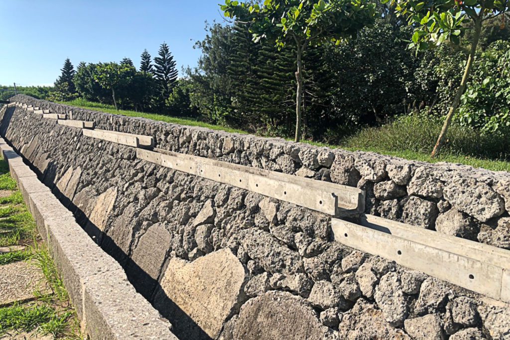 2011年完工的「澎湖山水濕地改造」,是個一公頃大小、預算僅一百六十萬元(人民幣)的小型改造案,必須要處理既有社區與大海間,自然出現來的內外兩濕地,逐漸成為社區污排水流聚處的環境污染問題。「大藏」先將原本僵硬地斷絕環境的混凝土防波堤,以切片與打碎的方式移除,並將碎片狀的混凝土廢料作為鋪地的板塊,以及混凝土碎塊用來堆砌過濾污水用的石牆,讓污水得以濾淨回流自然。手法輕盈、簡約也務實,處理地景的同時,顧及廢料的再利用與廢水的再循環,透露了「大藏」的清晰理念與價值信仰。