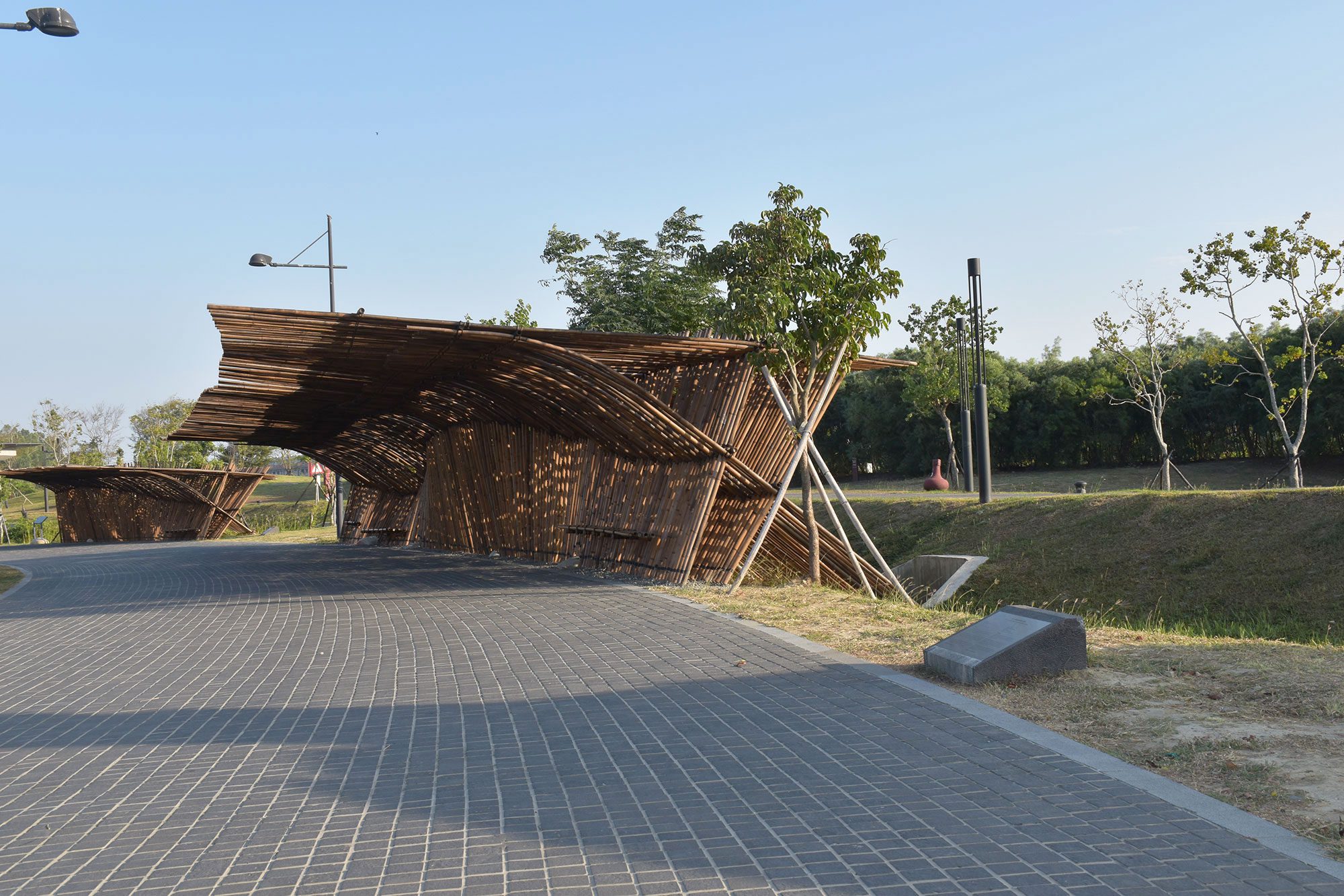 想要在鳳山溪的河堤上打造一個可以駐留的點,在心底留住一方風景。設於鳳山溪旁的夫妻樹下,用竹子當作主要…