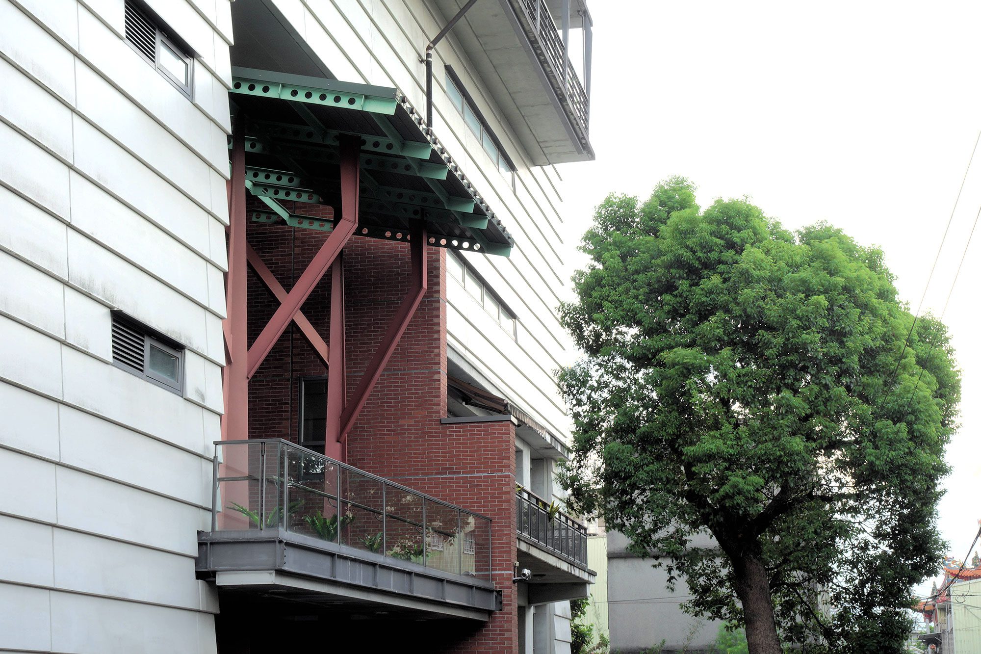 一是在RC結構的外部採用乾式外牆,主要是為保溫隔熱性佳的ALC板、及外掛紅磚牆,展現建築外觀的精準度,且歷久彌新。