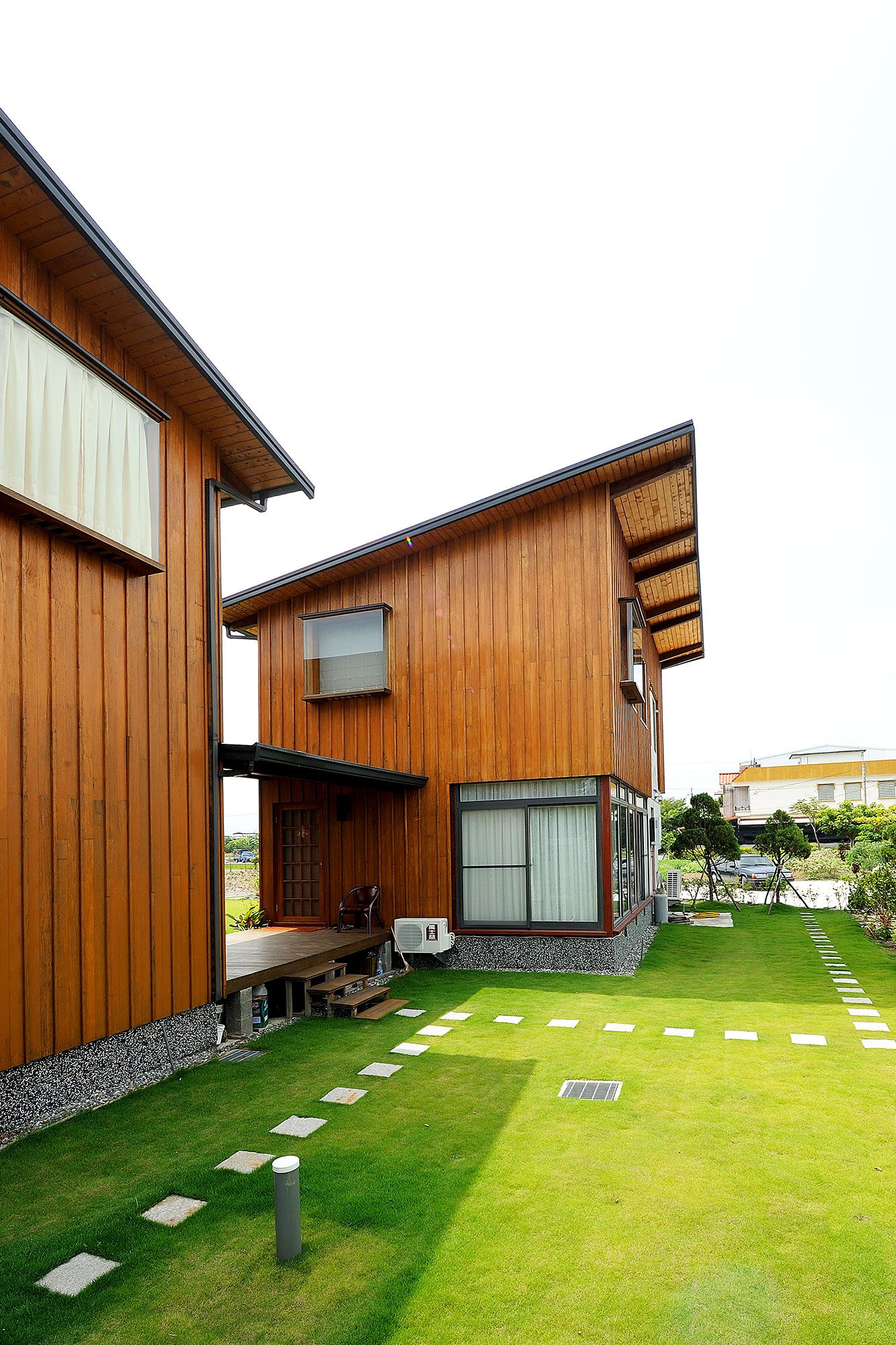 在木構造柱樑系統,為了經濟性考量,空間跨矩尺度採用木料常用尺寸,再配合設計意匠形成空間的韻律模矩;我們將較需考量水電線路及防水問題的空間集中,包括廚房及浴廁,以R.C.構造施作,其餘空間皆為木構造,讓構造體組成清晰化,R.C. 結構同時提供木構柱樑更強的穩定作用;為了達到建築節能,利用雙層外牆、屋頂板,以通風空氣層及岩綿作為外殼隔熱系統;為施工更省時省力,木構最好有局部在工廠先做預組立,因此設計時就需考量單元化構件模組及組立工序,將每一間單元建築的X向柱樑定義為一組預組立構件,現場再以橫樑串接組成。