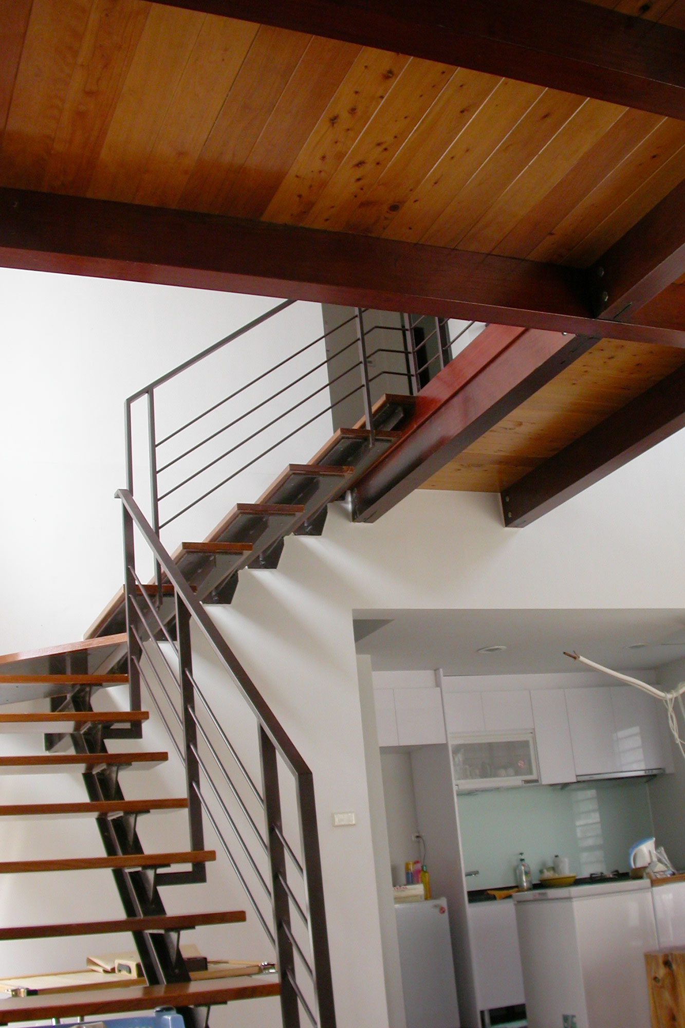 為發展更經濟且具推廣性的木構造建築,我們嘗試植筋工法和厚板工法兩種木構造工法。接合部位採用植筋工法,兼具美觀、強勁及簡便優點,當接點的強度及耐久性增加,可使木構造生命週期跟著延長,而施工技術簡單,易於品質管理,一改過去慢工出細活傳統木構造的高貴價位,且木料接點損耗小,可大幅節省工料;傳統木造建築的樓板、屋頂板是在主樑上加小樑,再舖上板材,五結簡宅則是採用厚板工法,木作施工簡易快速,可節省工資,樓板下平整簡潔,也無需再做天花板,相當經濟實惠。