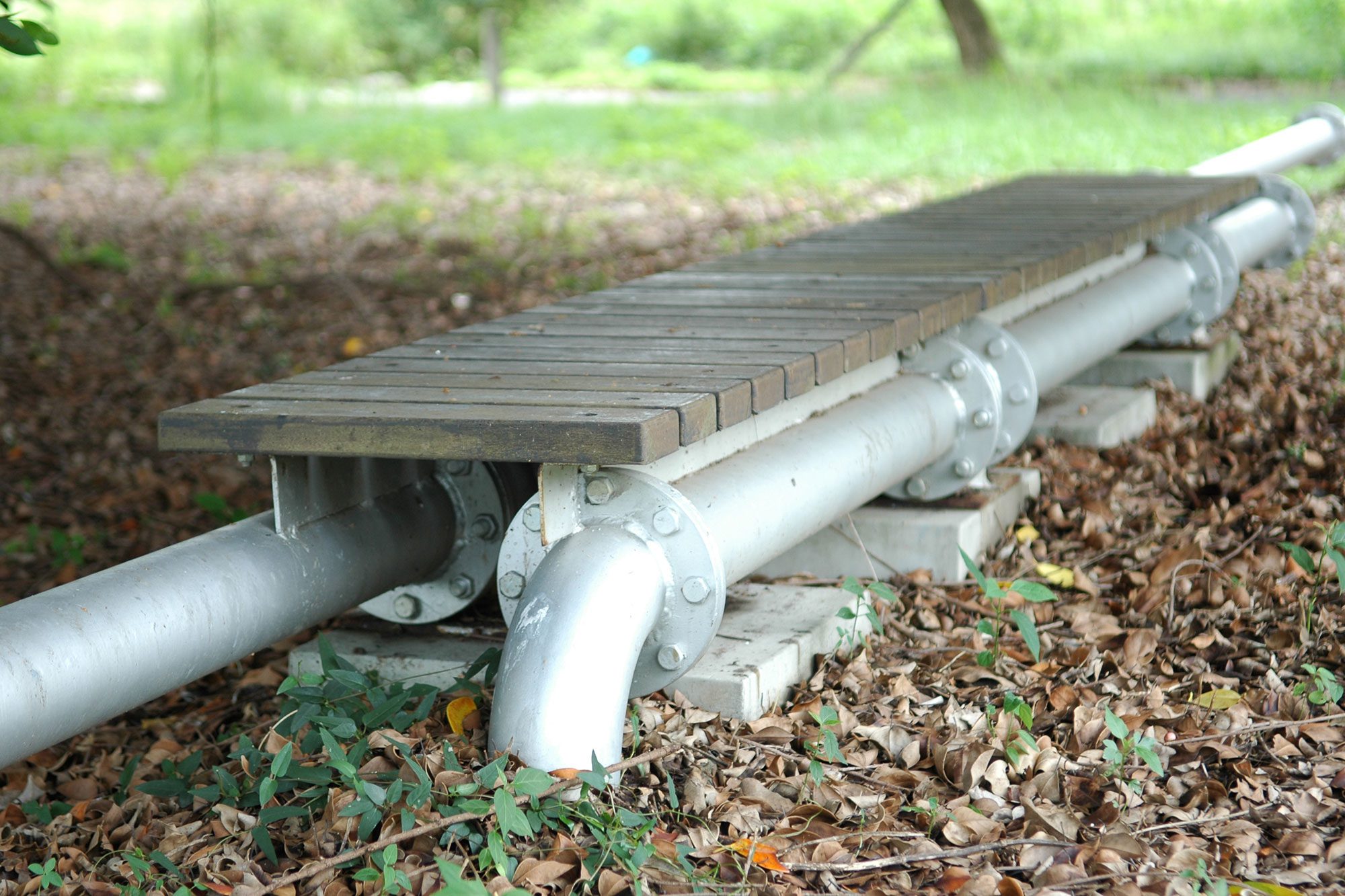 所以,廠區內的構造物保存不僅對歷史建築的重視之外,也延續並活化地方人昔日的記憶空間,我們慎重應用舊建築與現場原有的元素,譬如保留糖鐵軌道與渠道以保留歷史痕跡,舊廠房保留原有桁架、讓植物攀爬,成為虛的綠棚架;保留舊紙漿儲存槽,只在厚重的牆體上多挖一些小圓孔、讓光線可以進到槽內,並在入口加上類似雨庇的框架形成輕巧與厚重的對比,走進槽內的人們都很驚艷這樣的空間感。