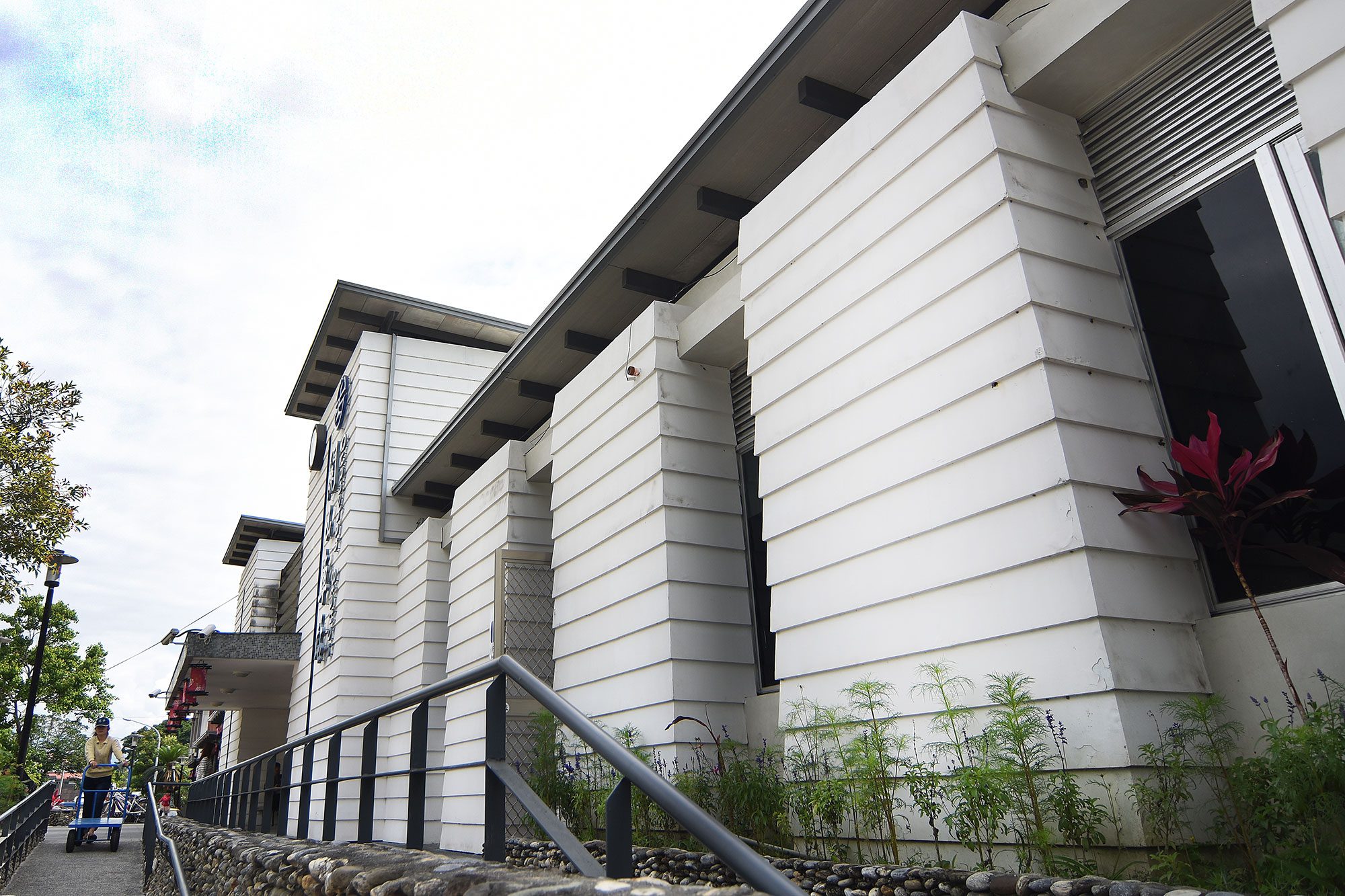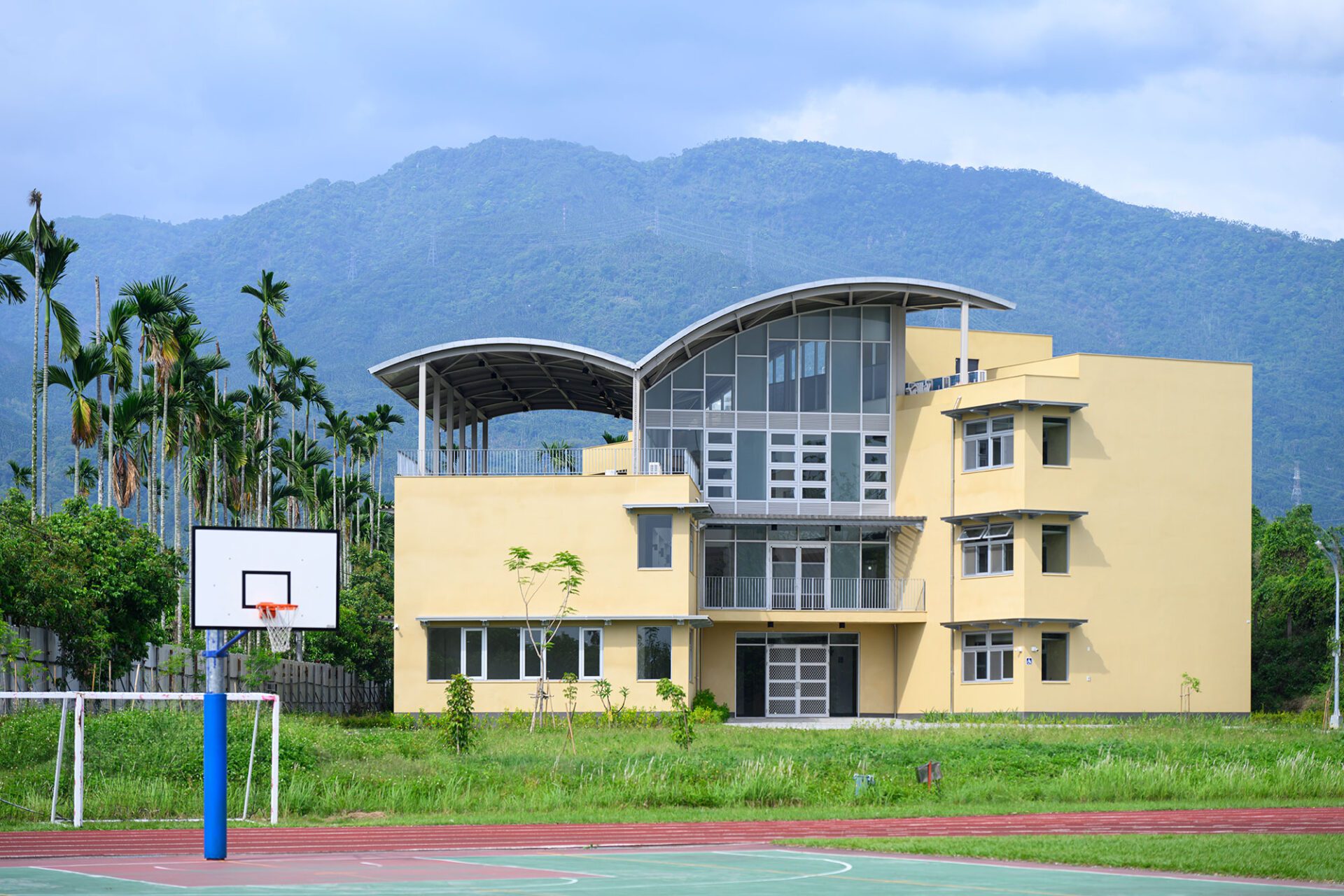 原有校舍已是二三十年屋齡的建築,改修後水電管線一定要更新,活動中心原來沒有電梯、無障礙檢討要加電梯,我們都採外掛露明,電梯外加在原有建築外,水平管線在走廊加線架,垂直管線外掛在走廊外、再加植栽攀爬網修飾。這樣的方式讓維生管道好檢修,也展現清晰的構築工藝。