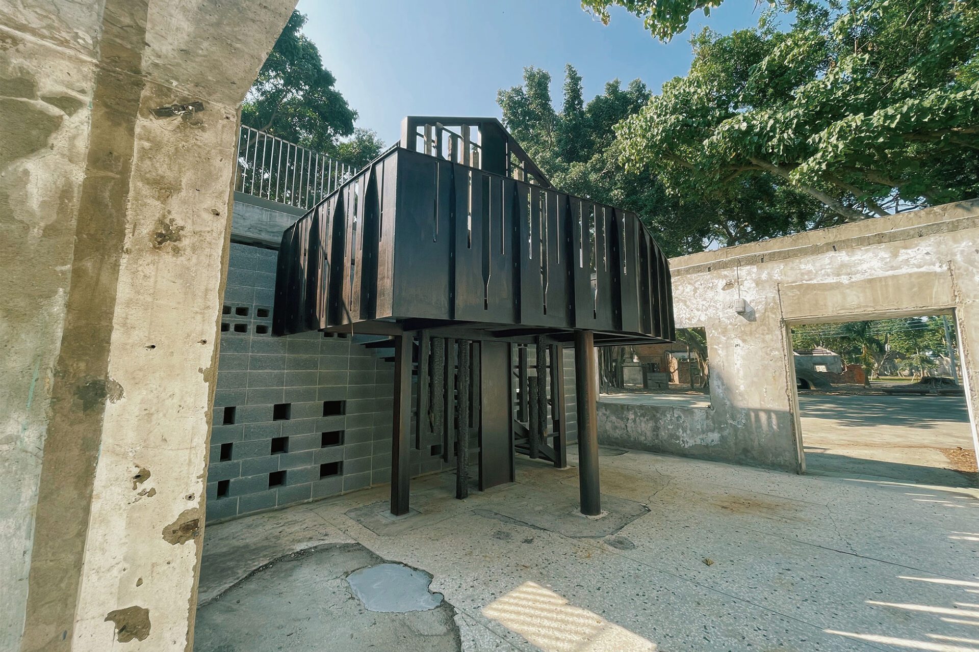 由於建國二村曾多次發生火災,雜林叢生與建築傾頹的條件使得此區域容易成為地方的治安死角,考量在更短的時間內以有限的經費使此區域得到初步活絡的可能與後續的低度維養,整體的空間再造手法並未採耗時較長的修復方式,而是在簡易的現場調查後,於符合分級保存維護的原則下,搶在遺構物進一步毀壞前,以低強度的修繕、類裝置藝術但仍不脫建築構築的手法,靈活、輕巧地設計,得以獲得短期內活化場域、加強民眾的參與與在地認同。
