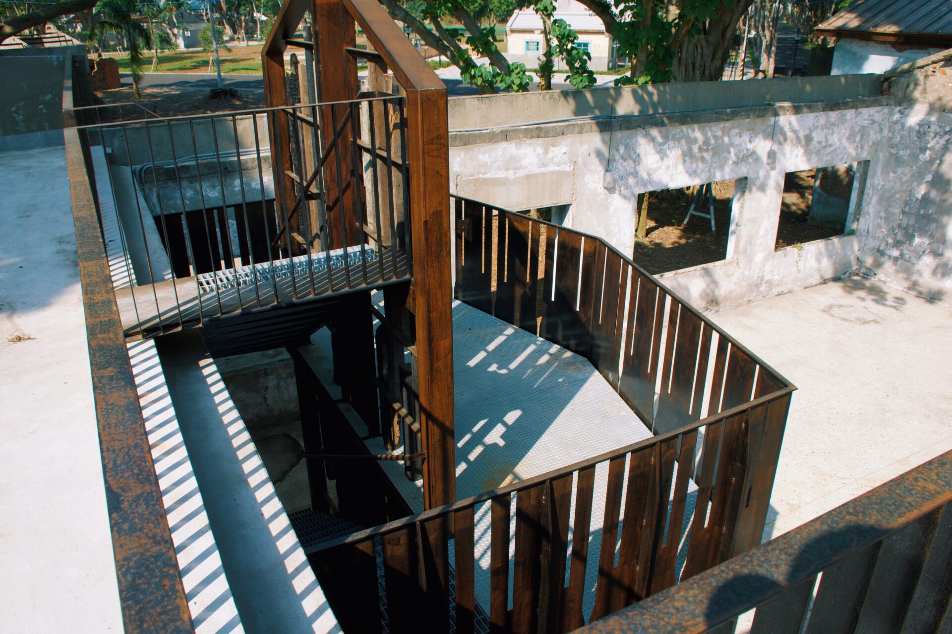 B. 林蔭大廳:以鋼構樓梯結合舊遺構,連結空間軸線與創造不同高層的劇場性場域。